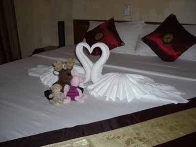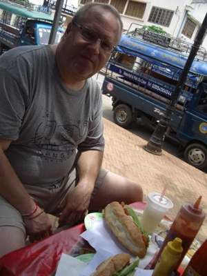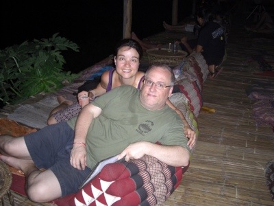 After a rest (aka nap) in late afternoon….We decided to give a massage a try before supper…twist our rubber arms eh? Troy went for Laos massage and I the footie : ) we ARE getting predictable aren’t we? As always we were very pleased. The girl who did my massage was beautiful, all business and teeny tiny….she couldn’t been more that 4’10” and 80 pounds soaking wet. But I am pretty sure she could have put her fingers through my skull when she was massing my head if she had wanted to (not that she WOULD want to). Everyone here is very nice….thinking not much English in that massage place though…just enough to say what we wanted and how much! I think it’s funny how I got a “foot massage” but I talk about her massaging my head….that is just how it works….