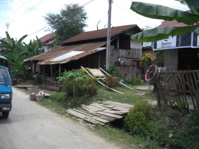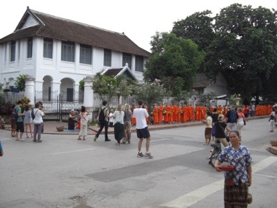 I had fried sweet and sour chicken with steamed rice. Yum yum!! Troy had Tom Yum vermicelli noodle soup. He said it was also very good! Even though that is technically Thai food…I let it slide (at least it was not a burger!). Cost 88,000 kip ($11) for spring roll appy, 2 meals and bottled water. Seems like good deal right? Compared to USA yes….but compared to Thailand we find the food a little more expensive. That meal in Chiang Mai would have been 8-10 dollars.