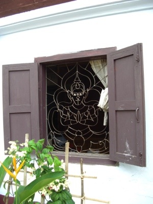 In our travels…I saw this beautiful window decoration. All windows here are open air….as in no screens….with wood shutters…so this fancy bit on a house down a side street caught my eye.