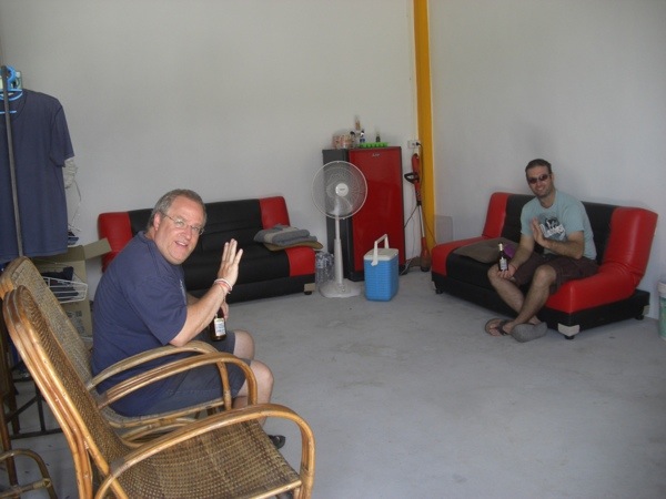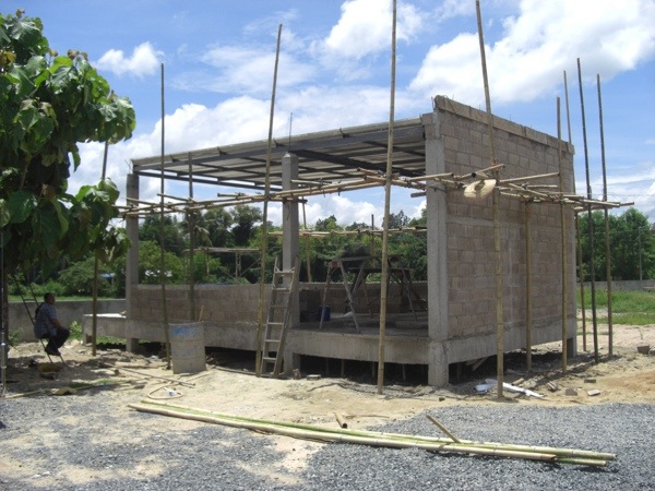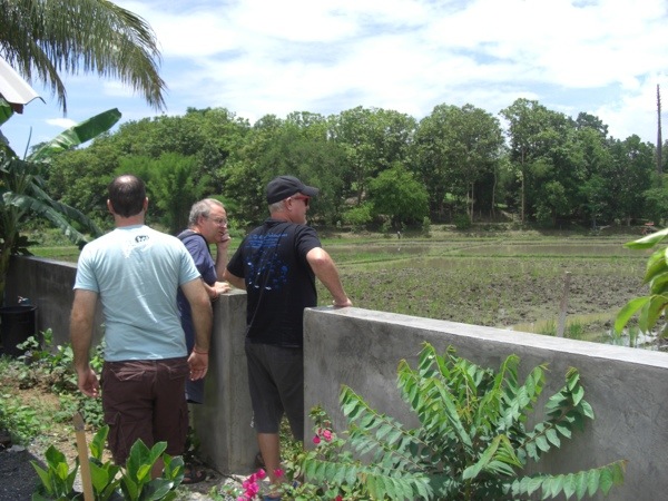 After being able to sleep in a bit, we met up with Ian, Tee and Richie at Ginny’s Cafe at 11am to head out for a day we had eagerly planned for earlier in the week. Tee had arranged for an air con mini van to pick us up and take us out to their land in Mae Rim so we could see the progress they are making with their building. Ian’s man cave is built, there is a bathroom and kitchen and Tee’s woman cave is in progress. The restaurant is next, then the house and pool will be started by October (they hope). After that, they are going to build 5 or 6 more bungalows to rent out….