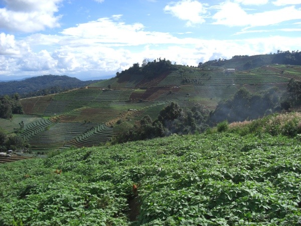 We loaded back into the van and started the drive to a mountain top viewpoint that Ian found a while back on his motor bike. Suffice it to say, places you can go on motorbike take a lot longer in a commuter van….but it was worth the drive! It was up in the mountains at a hill tribe village where the Hmong live. We had lunch in a sala up on the top with a view to die for. The pictures can’t possibl do it justice, but i’ll try…