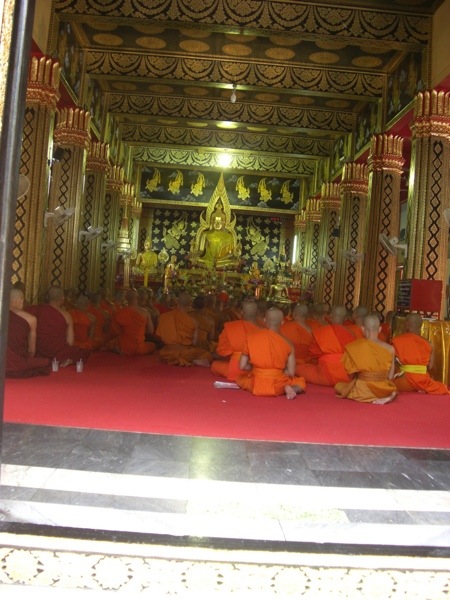Also Monday is a big holiday in Thailand so lots of stuff closed and the monks have a lot of ceremonies and special events. Riam told me about this large group of monks praying in her temple, so she said I could go take a picture, but we got some strange looks after I took it and then when we moved, they took the “no entrance” sign and moved it over it so the view was no longer accessible. I think I may have been a bad girl taking this picture….I’m not sure! Uh oh!