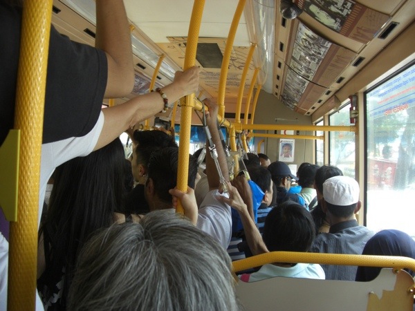 Well, at last the next bus came, and it was another crazy mob scene, but the guy told me where to stand and encouraged me to hold my ground and push on! Troy and I stayed glued together, and we managed to get on the bus, standing room only! We were off! All for $2.13! It would have been at least a $16 cab ride….so feeling good about this ; )
