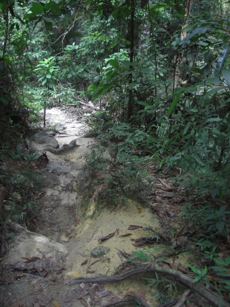 We decided to hike to turtle beach and take a prebooked boat back to the park entrance after, 80 ringgit ($25- good use of the money) The path started off very civilized, and I was thinking “yes! This will be a fun and easy 2 hour hike we have planned!” what started off as this…..