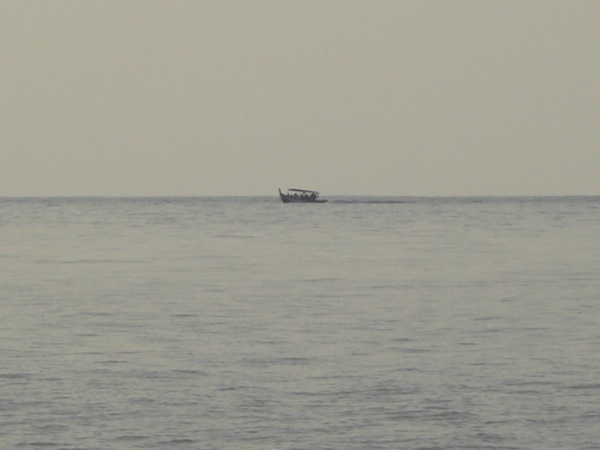 There was handful of workers doing some concrete work on the pier and they looked at my slip and said we were in the right place. When they left at 6pm and we were all alone on the beach, I started to get more nervous! Then we see a little boat in the distance…I took a pix with my zoom lens.