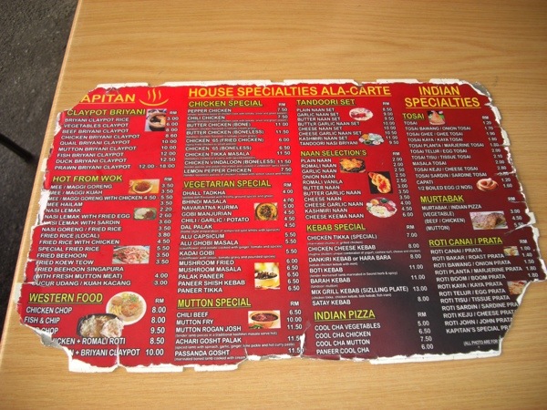 We went to “Little India” for supper…the street food was phenomenal. But since we recognized very little of it, we decided to look for a sit down restaurant. We found one….the menu gave us a chuckle, but at least we were able to order some things we recognized.