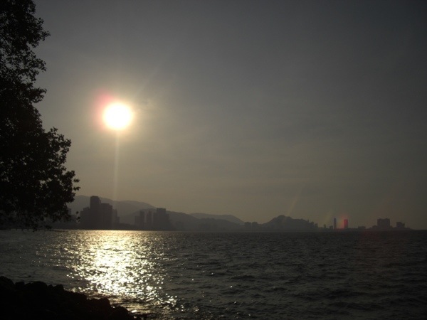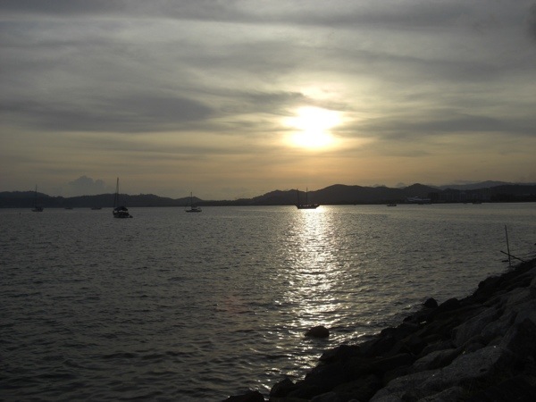 With our bellies full, we decided to walk down to the ocean. There is kind of a smaller version of a sea wall there. Managed to catch the sun setting….
