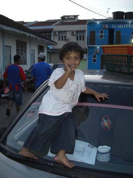 There was this super cute little kid crawling on a car (waiting for his parent to pack up their stuff from the food market I guess). Super cute and posed for me like a champ!