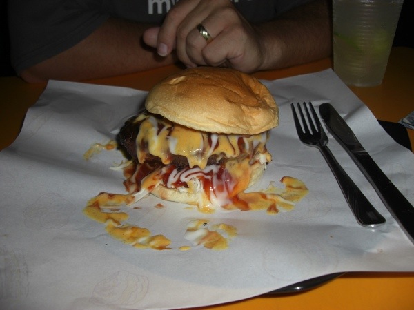 But we see all these other people with big plates of food, rice and meat with sauce (looks a lot like butter chicken for example). We are literally the only losers with a chicken breast and a piece of bread! So not sure if this was a joke or not….so we ate it, paid and left. I should have taken a picture of it….but was so rattled by the experience, I just moved on. I did however take a picture of the burger we got AFTER we left the indian place….Hahahahahahahaha….now this was good!