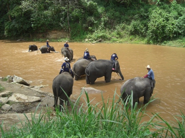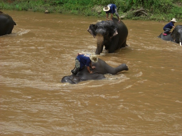 After they eat their treats, they go down to the river for a bath. They usually have some fun by squirting the tourists etc…. Gets a lot of squeals.