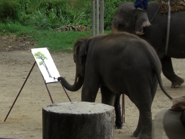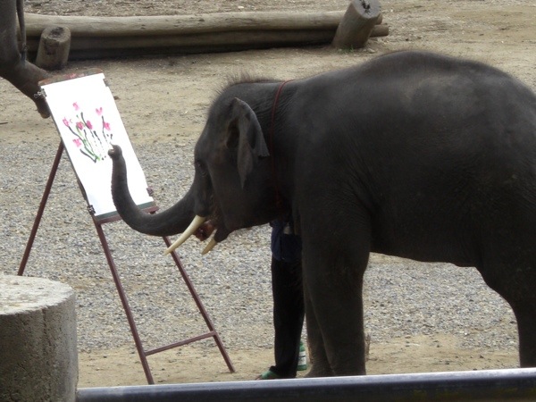 Jackie, Suda is still there painting, she is 9 now. The are 2 other younger elephants that are also learning to paint, so they had three elephants working on paintings.