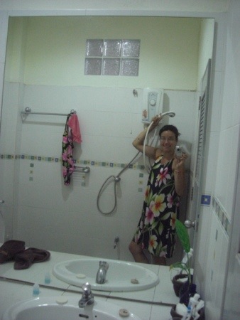 (She is short) so Erica and Jackie would have no problem with the shower here….the rest of us get sore thighs squatting down to rinse off….