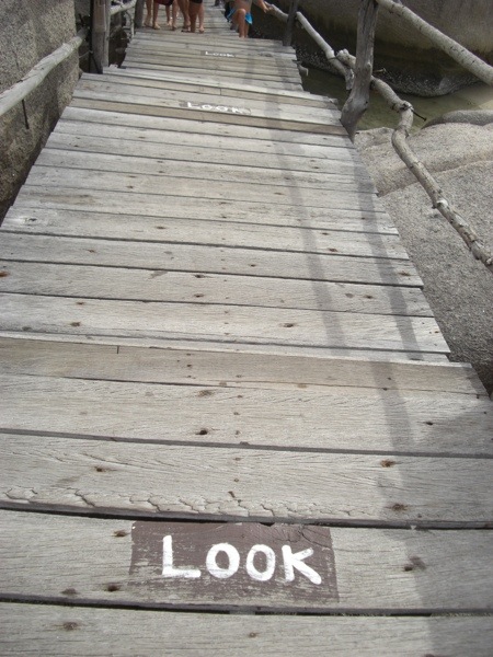 I also thought this was funny, along one of the walkways from the dock, they wrote before each little step down….
