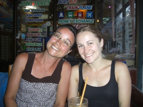 We had plans to meet up with Erica at 6pm at the Tong Thai restaurant that we had such a great meal at the night before! Now here is the sad part….our friend Erica fell in love with Koh Tao and rock climbing and she has decided to stay put in Koh Tao while we go on ahead with our plans to go north to Chiang Mai. So this is our last meal together until hopefully she catches up with us. She may not however as she is thinking about staying here for the rest of her trip and maybe extending it a bit until mid August or so. So I put on a brave face for the photo but I was sad.