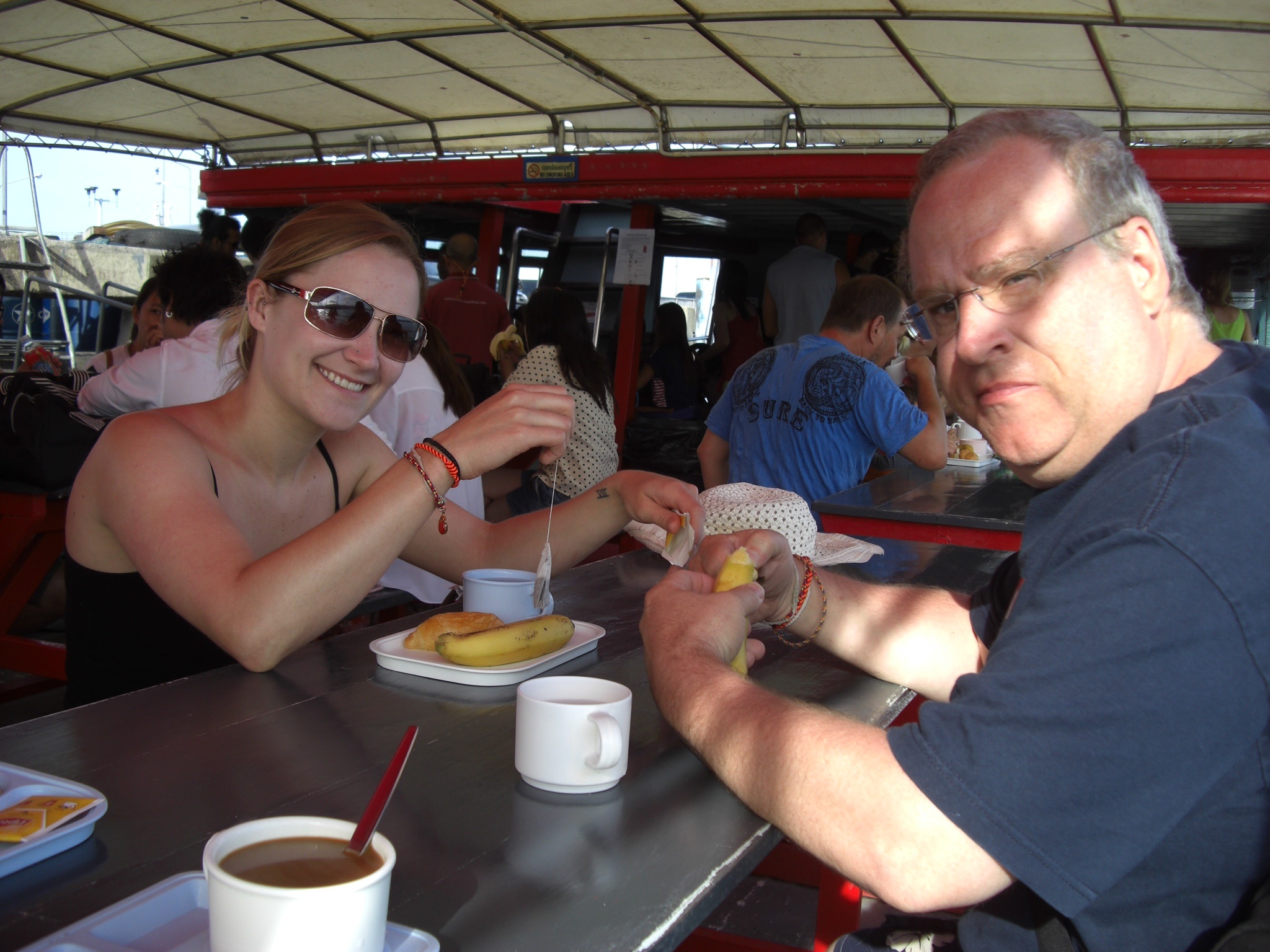 We got to the boat and there was a light breakfast served. A banana, a croissant and coffee or tea.