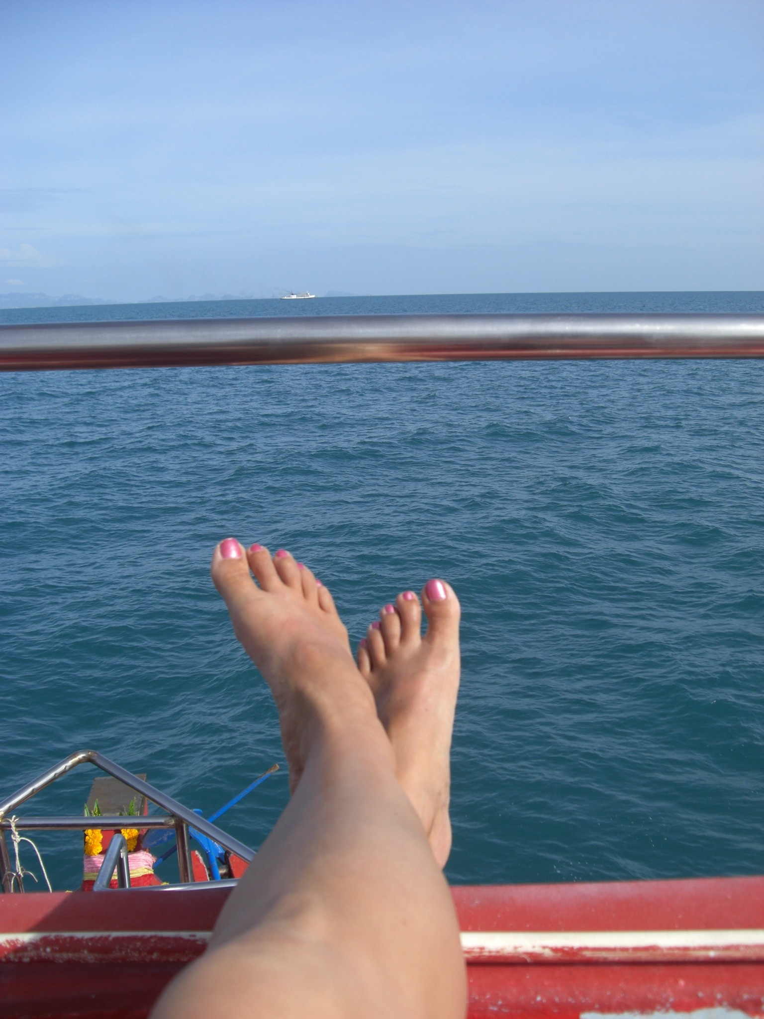 I have a friend who always posts these fabulous pictures of her feet with pretty little painted toes and a glass of wine every scenic place she goes….so here is my tribute to Jen…minus the wine : )
