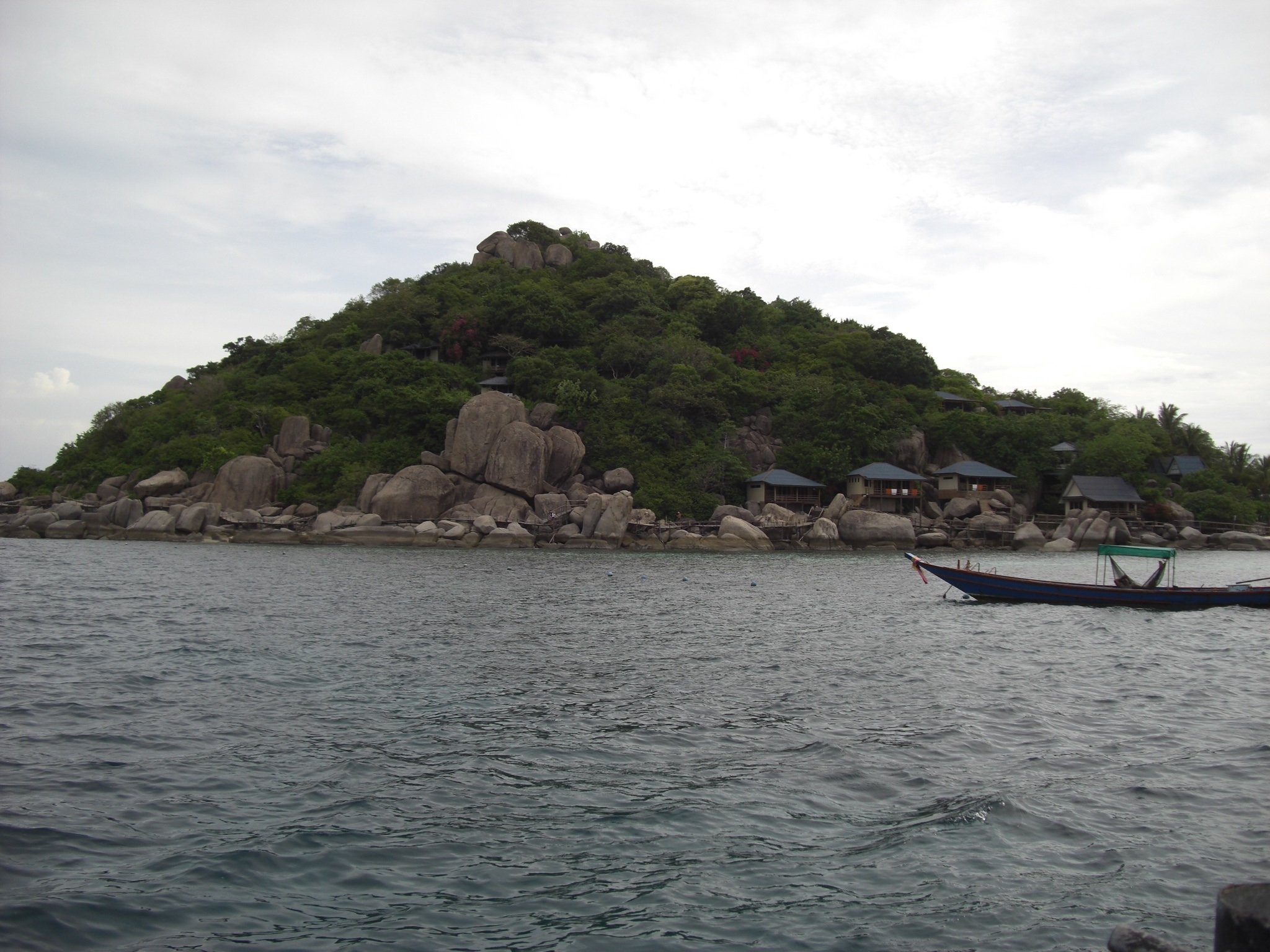 When we we sitting on the dock waiting for our ride back to Koh Tao, I took this picture of the island we hiked up….maybe if you look carefully, you can see the little people on the top. That is where I was when the previous picture was taken. Right on that pile of rocks at the VERY top. (Where I was king of the castle ; )