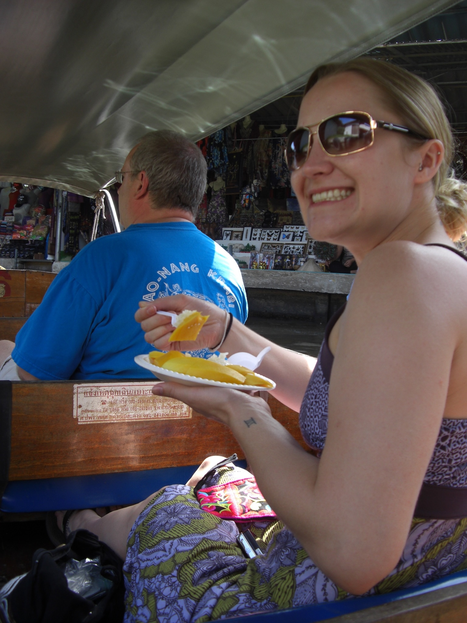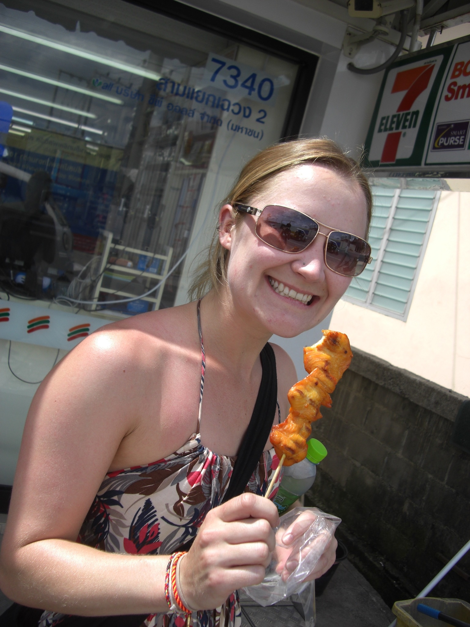 It took an hour or less I would say….pretty hefty walk in the stinkin’ heat! Erica had some chicken on a stick for 10 baht! right good deal i must say!