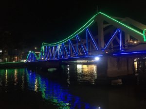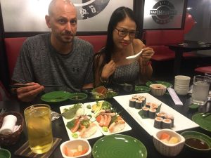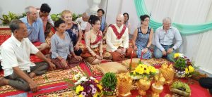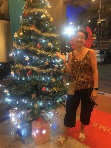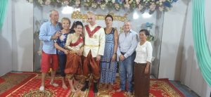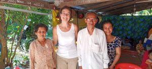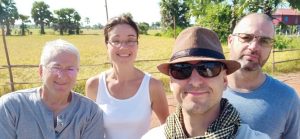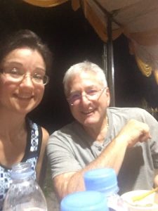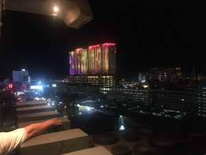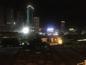 I should catch you up on last night! Around 6:30pm we caught a Grab over to a rooftop bar in the East part of the city. Traffic was really quite horrendous but the tuk tuk still only cost $2. Vehaa was the name of the bar. Rooftop bars are such a THING here. Maybe I’m getting old but I just don’t love going to rooftop bars. The view is always nice I suppose. I do appreciate that at sunset, but we were well past sunset by the time we arrived around 7pm. For Pete’s sake that is getting close to my bedtime. Anyway, quite lovely. I didn’t partake in any libations. I was waiting until the next stop 😉 We met up with Sam’s French parents Marie Claude and Hubert. This is really nice because I didn’t get a chance to properly say goodbye in the village. Such an interesting life they lead. They travel between New Caledonia, France and Cambodia. With most of their time spent working in their foundation for education here in Cambodia (thus their philanthropic connection to Sam).