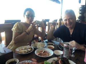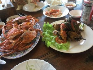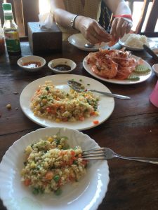 So i should’ve just gone with that but made a poor decision to order chicken at a seafood place. Let’s just say that what came was not what I thought I was ordering. For $12.50 I thought actually we were ordering a whole chicken they Landon and I were going to share. He doesn’t eat seafood either, but we ended up getting (essentially) some bones from a chicken leg. But lesson learned. I think the seafood places in Kep Don’t want to cook and serve items other than seafood, so they make it Prohibitive. Perhaps even punitive