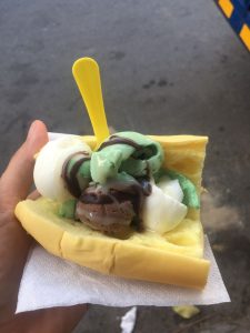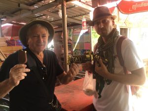 I’ll be honest I’m kind of snacking my way through Phnom Penh this afternoon. I may have found some absolutely delicious fried chicken, and an ice cream lady on the street is selling three different kinds of ice cream out of a bun, I know it sounds weird but it was really really good!