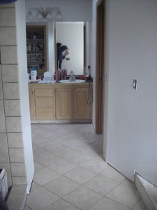 This the view from the window end of thebathrooom…you can see my fancy tool. Those who know me, know I like a nice power tool as much or more than the next guy…BUT this one was really only fun for less than four minutes.