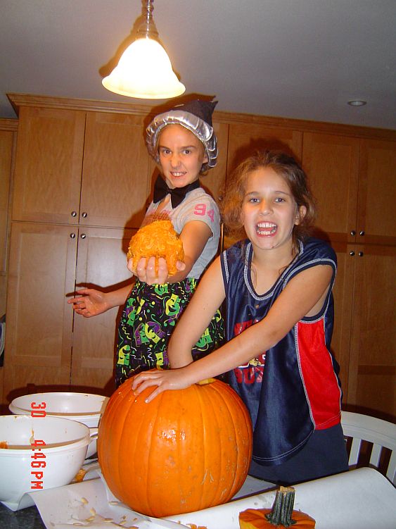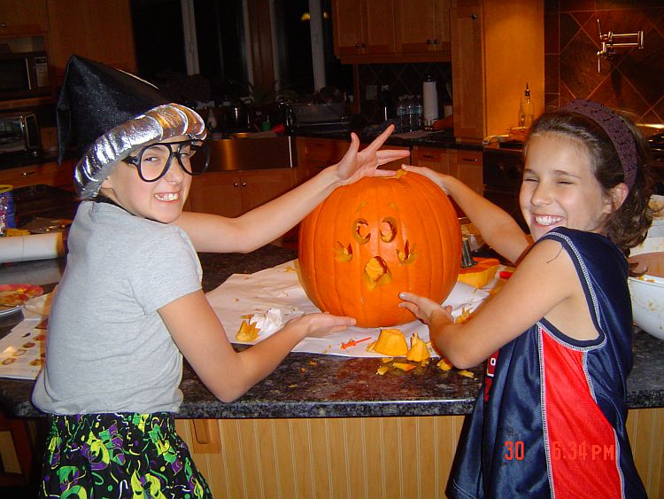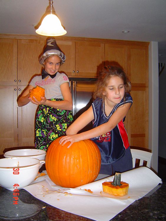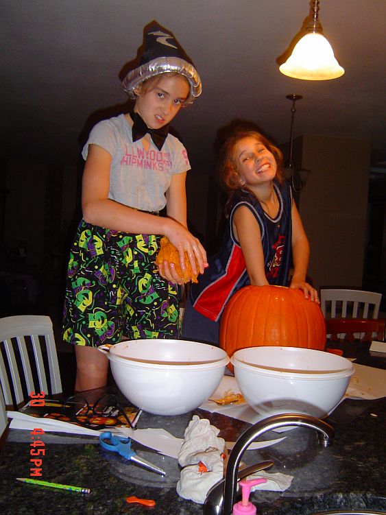 Here are the girls carving their jack-o-lanterns. Brooklyn had to work…but was not that into it anyway