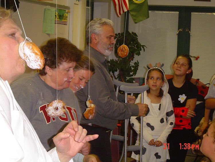 This is the principal and Jackie’s teachers in a donut eating contest…