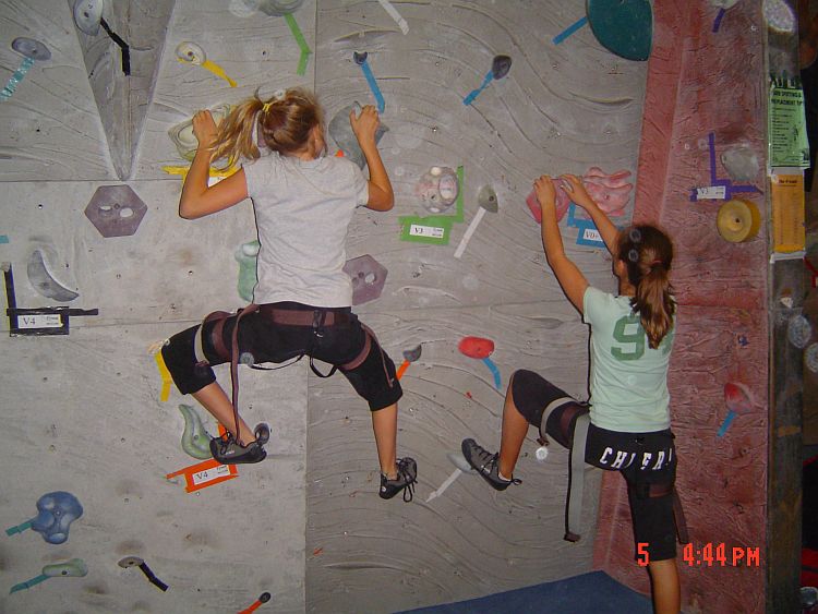 Kendra and Ruby climbing one of the smaller walls