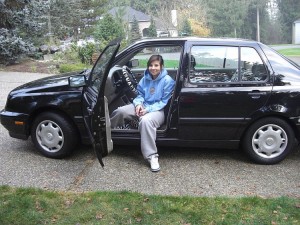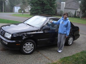 We were able to find what we believe to be a decent affordable reliable car for Brooklyn. So here we go again–another Jetta will join our family. It is a 1996 Jetta GLS (for those of you who care). Brooklyn has installed her zebra accessories–so she is all decked out and pretty happy…