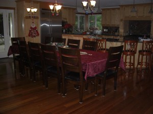 For those who are interested in such things…here is our new table. We had a dinner party for 14 last night and we all fit nicely around the table…so this is great news!! It is weird, it does not look that big in the picture…but it is 122″long (11feet).