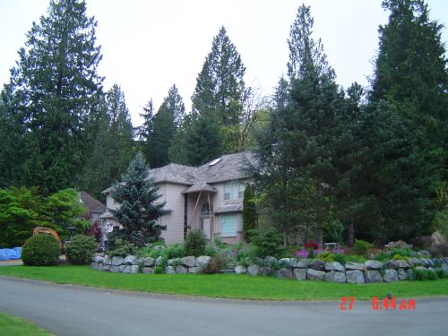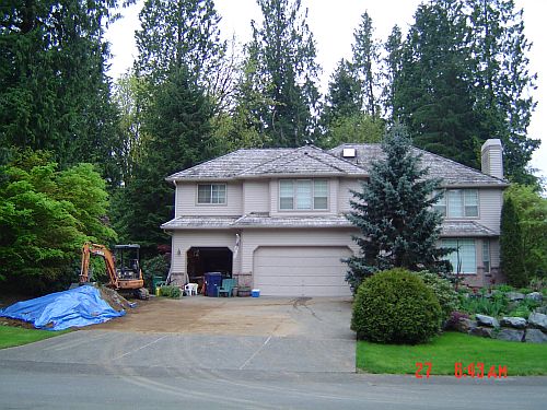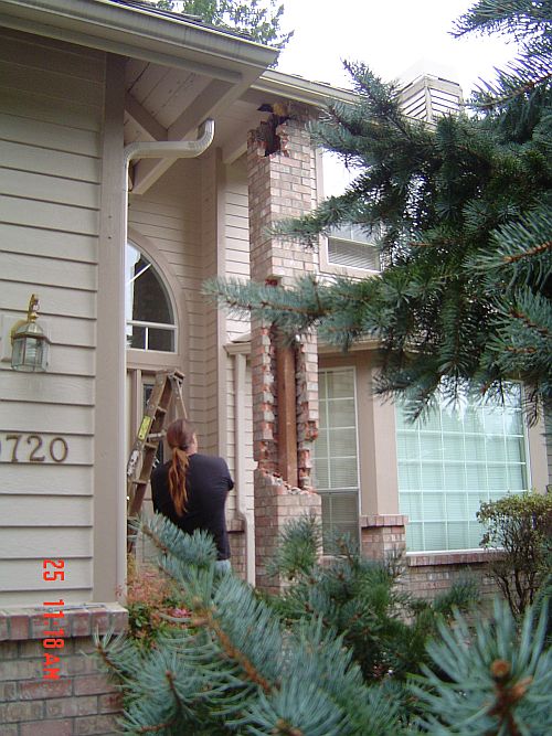 Here is what the house looks like from the front street…no pillar, just some fancy 2x4s holding up that porch roof