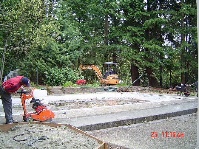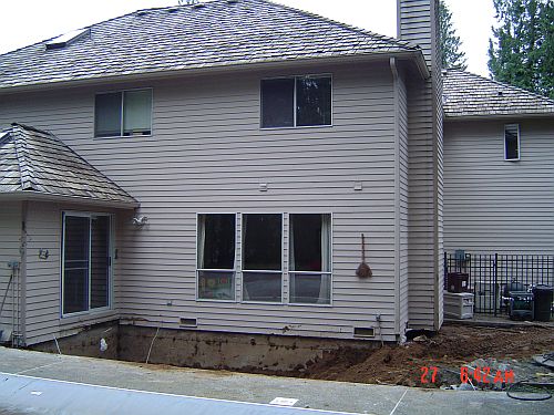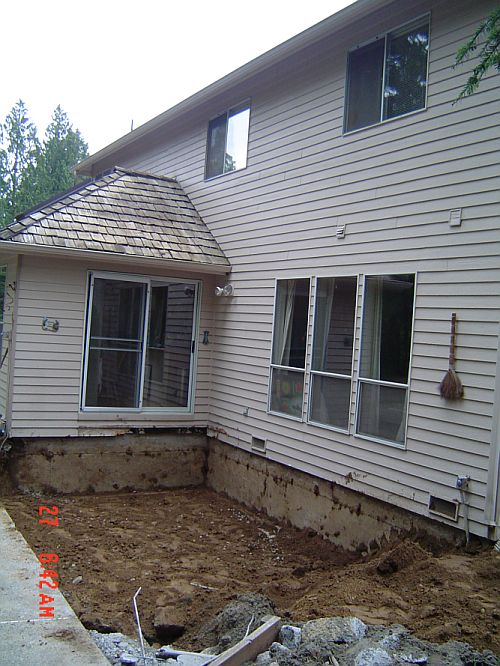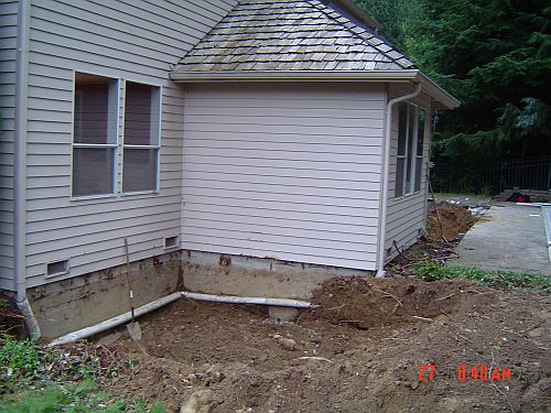 Day 3 started at 8am…so a little earlier. I was up and already showered though as I was unsure when the sewer pipe to the tanks would be out of commission. As it happens, it was not cut at all today as they spent a good chunk of the day getting ready to cut the pipe. They had to core drill through the existing foundation where the new exit is going to be…They rented a 4" drill and the pipe was 4 1/4", so they spent a bunch of time chipping at the hole to make it bigger. They did however bust up the electric switch that controls the tank pumps…so while we technically HAVE all the plumbing…we have to use it with caution until the switch is fixed bcz the tanks are not being pumped out to the field, and if they fill up…we are in a bad spot. It will be Monday at the earliest…could be longer. Had a an window place and another electrician out today for quotes…We have to make some of these decisions…particularly the windows as they can take up to 5 weeks to be manufactured. The guys cut out at 6pm today…so a little early HAHA. I am such a mean boss…the jokes are flyin’ about getting me my own hard hat