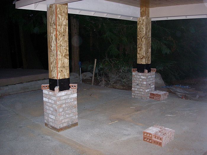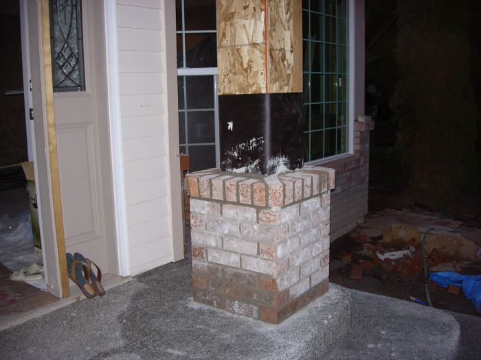 And here is the work that the brick guys did in the front on the colums on the porch and also the back BBQ area…they just grouted them today and are working on completing the caps…