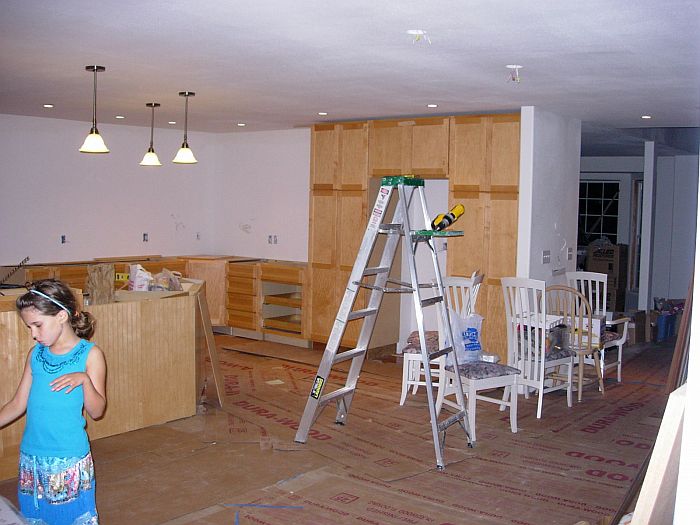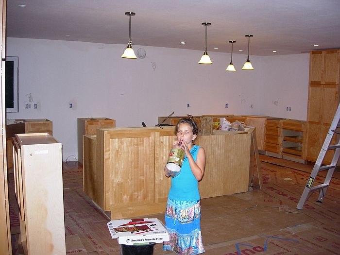 I took some pictures tonight after borrowing a camera from Kim (kind neighbor). This is how the place looks (and will until Sept 21st when the granite gets installed). We have our template appointment on the 7th and the install happens 2 weeks later–no earlier and no later–