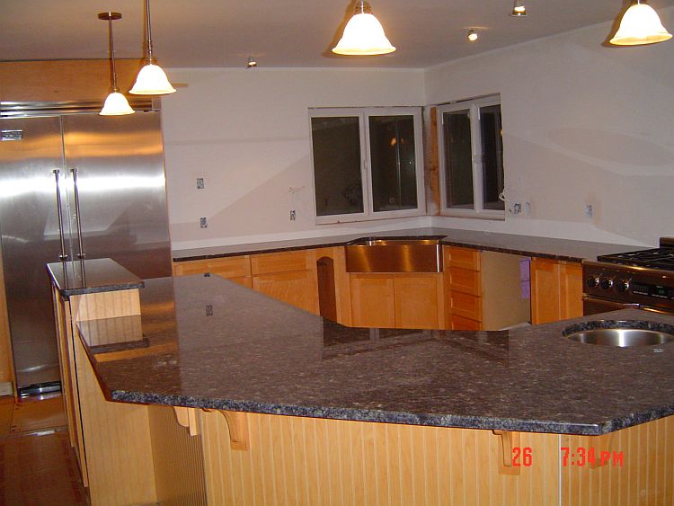 Oh HAPPY day…After a delay of 5 days…we got our granite today. First I will let you know how we ended up with an installation date of the 26th. There were some scheduling errors at FineLine and they gave our appointment away last week, one day before our appointment. They have made amends with us…and now that the granite is actually in, all is forgiven! I am so delighted with my colour choice! It is gorgeous and Troy is happy…he had not laid eyes on this granite choice until today when they showed up with it…all 3000 pounds or so of it