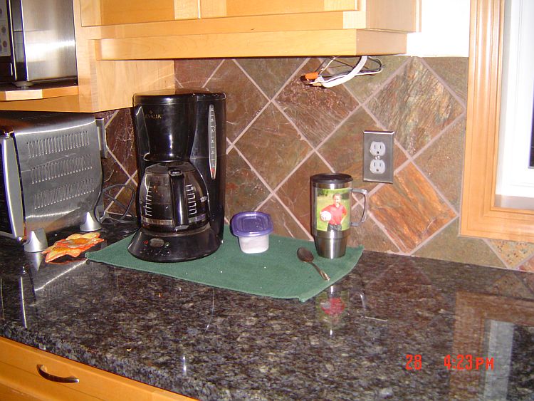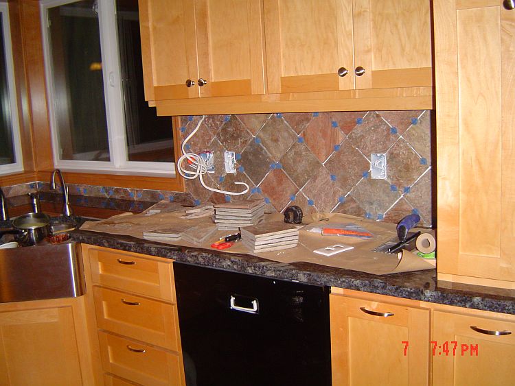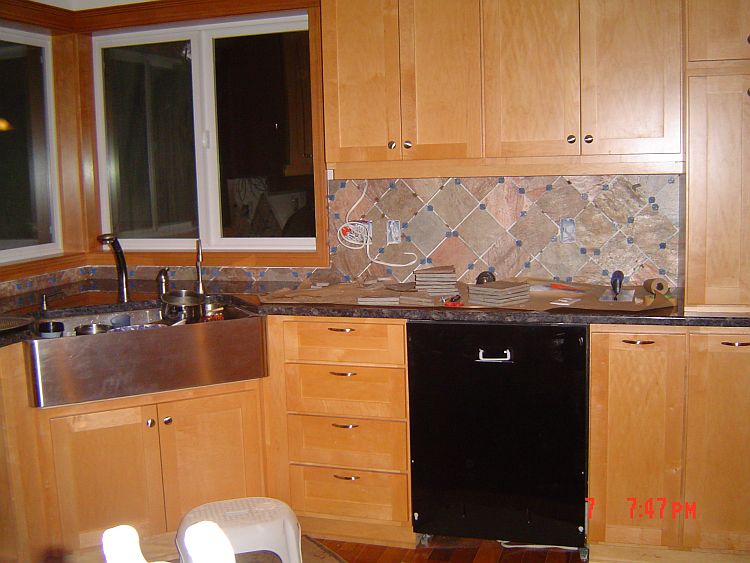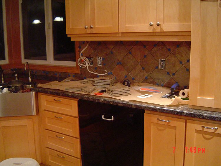 I have grouted and sealed all the tiled areas in the floor and the back spalsh that are completed…I still have to do the backsplash behind the range, the small area created behind the raised bar in the island and the backsplash in the sunroom. BUT htis does not seem like juch compared to what I have already completed.