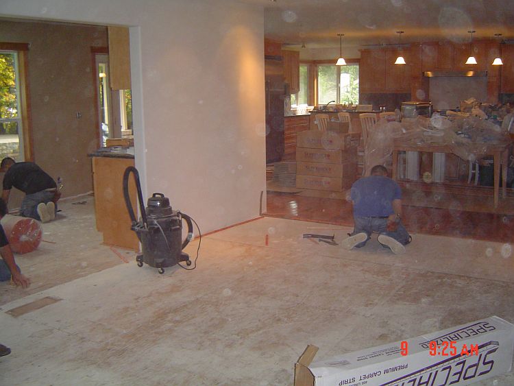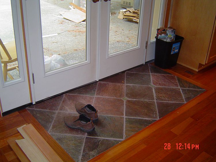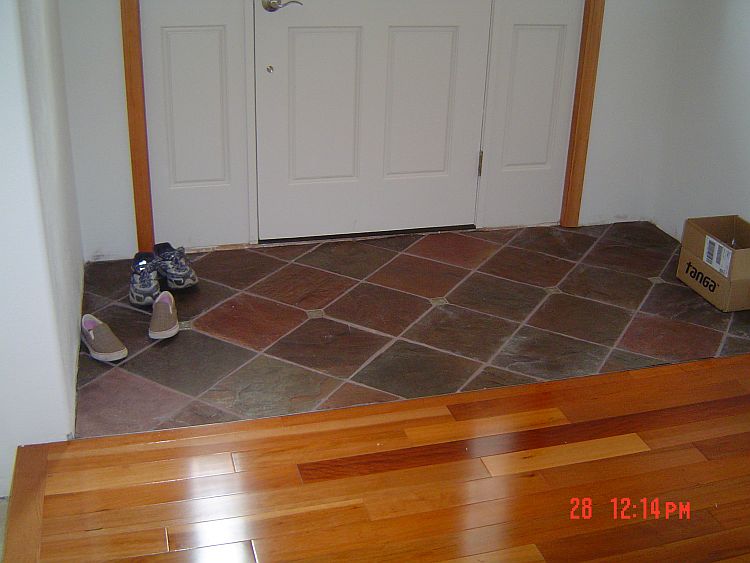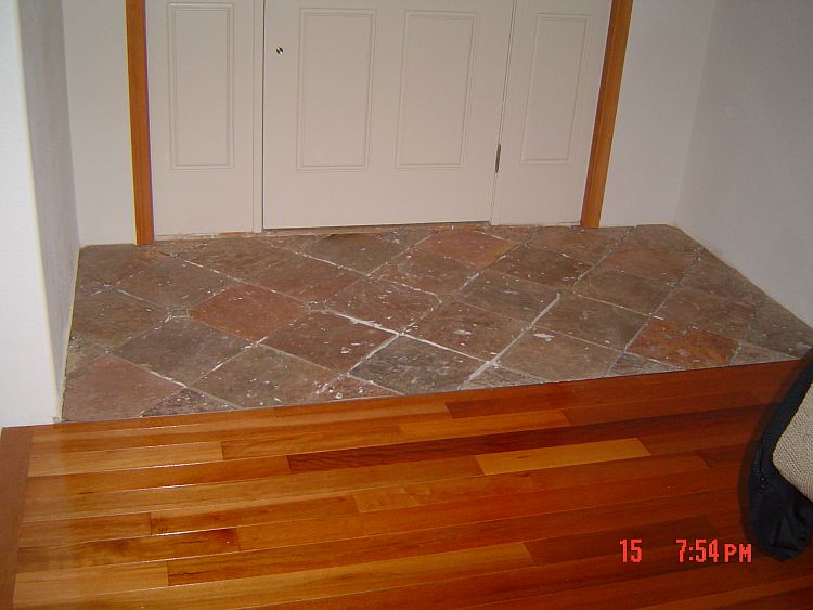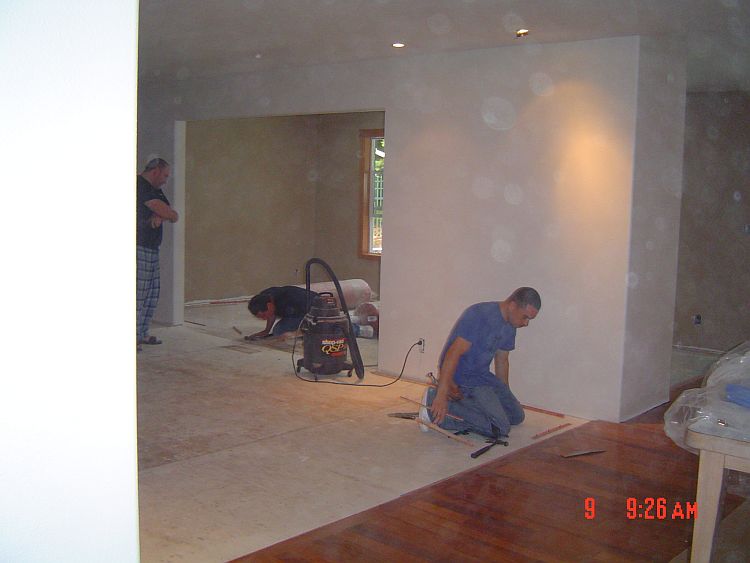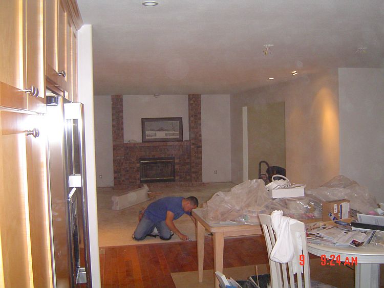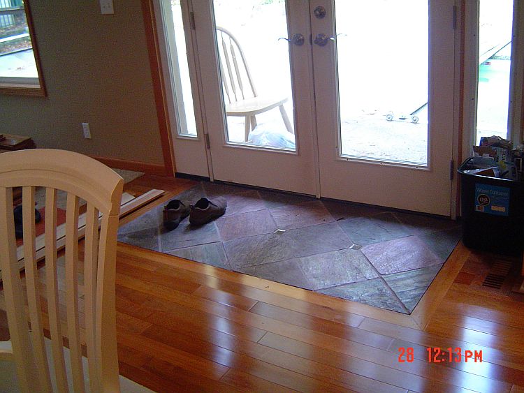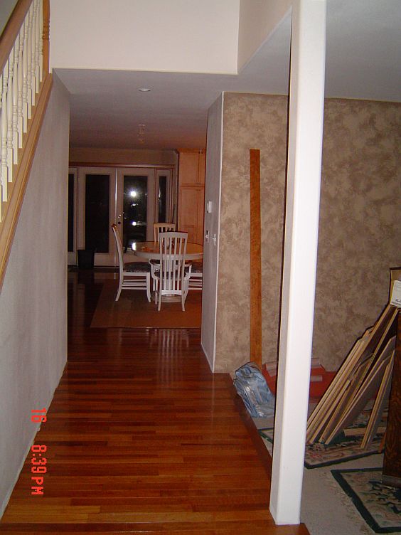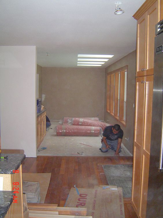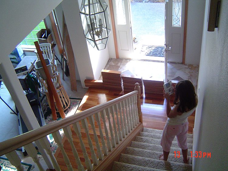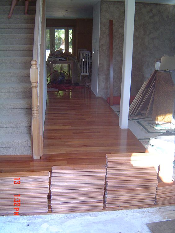 The hardwood in the hall going to the front door and the tiling are just not going to get done before Leroy packs up his tools and goes home, so we are going to try to get him to come back after we are done to finish the trim work there.
