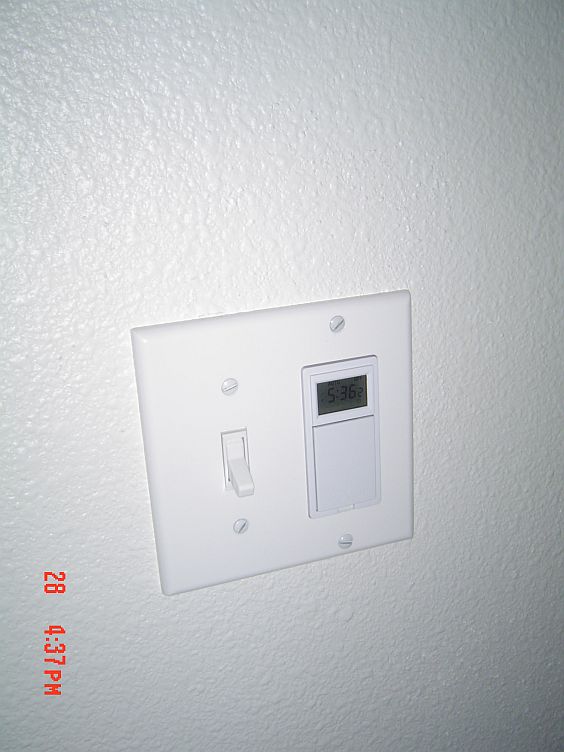 Troy put the thing in the switch at the front door that you program with your longitude and lattitude and then it calculates when the sun rises and sets and turns the lights on and off accordingly. Kind of a fun little thing for $25