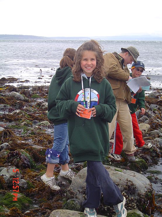 This is Jackie on the beach looking for chittons, snails, shells and other good sea life