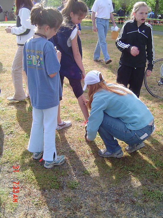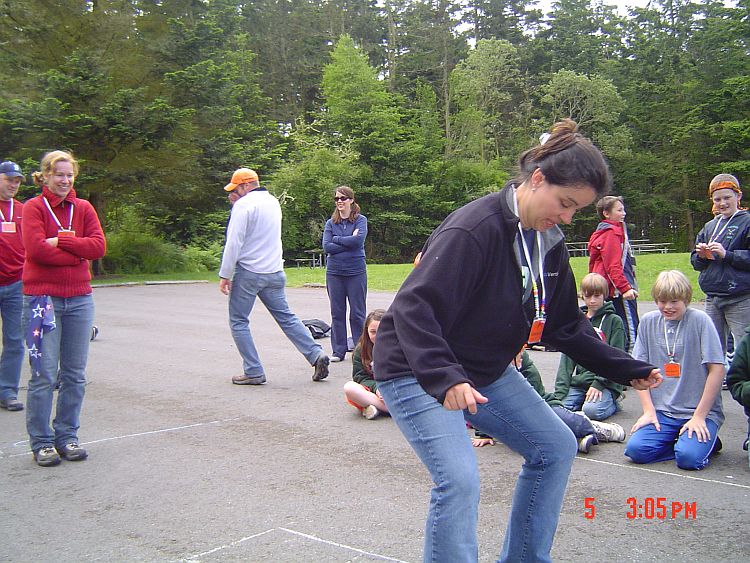 Project Wild was a session about the migration of birds and how humans have changed their environment to make this more difficult for them…so the "hands on" learning was a hopscotch that got increasingly more difficult as the squares were eliminated from being used. So here is Jackie doing her thing and below is the one piece of photographic evidence that we have that shows I was at Camp Casey