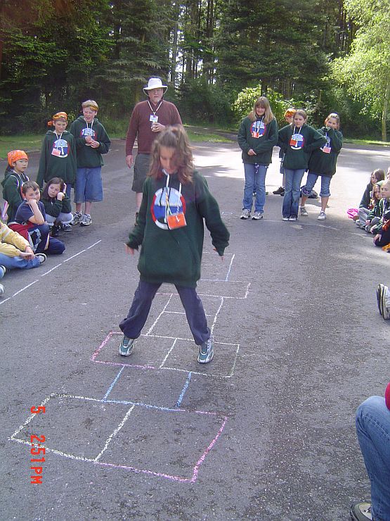 For the entertainment of the children (and some other counselors) I am doing the migratory hopscotch…