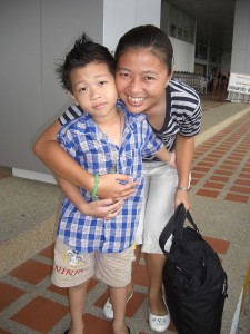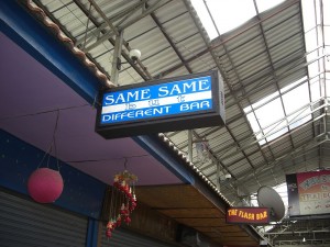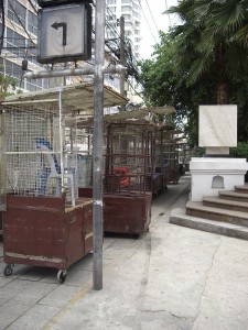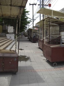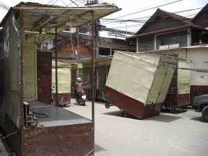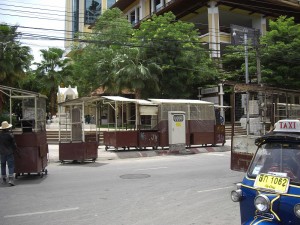 So we get there and there is only one other couple on the bus also tourists. We turn around and there are 2, what turn out to be very persistent taxi drivers. Seriously, there is no escaping this guy…he is determined to take us around. He says only 20 baht. So we know right away…he wants to take us to factories etc where he gets gas stamps…sigh. I make him promise only one stop and then we go where WE want. Yes…he promised!