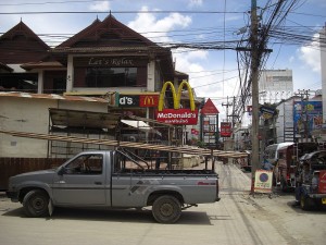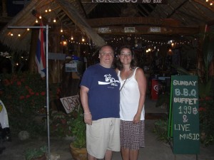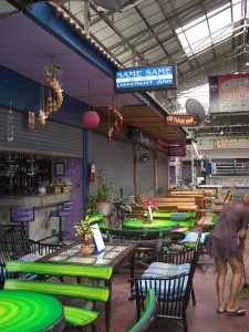 On our last full day in Thailand, we decided to take the public bus (we call it the chicken bus) to Phuket town. If for nothing else but the adventure. So it cost us 60B for the two of us to ride the chicken bus (vs 500b for a taxi). And we were off. It took probably about 45 minutes to get there as the driver went about 10 miles per hour until he was through Kata and Karon beaches. It was nice though as it is all open and there was a nice breeze being generated.