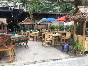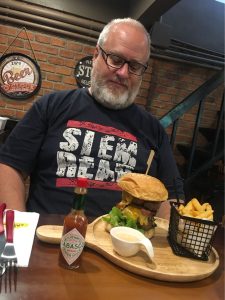 It was actually pretty darn good for a lunch set Thai burger and at ~200 baht ($6usd) each, it was fairly affordable western food. They made everything from scratch and offered several choices. Curly fries or regular, cheese choices, pop choices, sauce choices. Troy’s burger was a little ridiculous in fact (Tabasco bottle for reference) and once Rachael took the bun off hers and gave to Troy, he had two complete burgers….