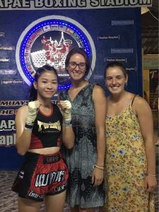 The big plans for the night were to walk over to Chiang Mai Gate food market, get some supper, (fried chicken here I come), then head over to the Thapae Gate MuayThai boxing stadium to see Riam’s daughter in a boxing match at 9pm. So I’ve been coming here 10 years now and somehow managed to avoid this spectacle, but Riam invited us, and to be polite and supportive, we decided to go.