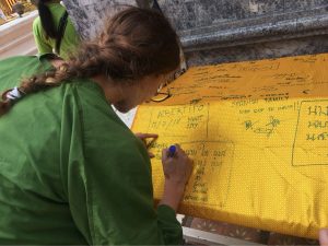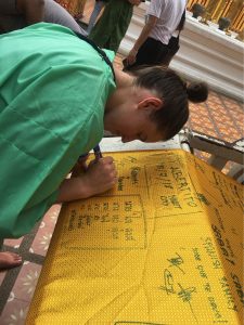 Rachael, Anna and Troy all signed the gold cloth that will be used to wrap the pagoda at some point.