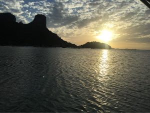 The sun is shining and the sunrise is gorgeous over the water as we rode to Krabi on the long tail.