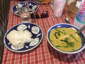 I am starting to fear that I’ve not enjoyed as much Thai food as I should have! We leave for Cambodia on Thursday and I know I won’t be having Thai food there! I see a lot of western food in my near future given our travel companions! I am determined to enjoy some Thai food tonight! When I walked past Mr Kai’s On Sunday night, I noticed the place was packed, so I suggest this as an option. Troy had some kind of Islam/Thai dish for lunch, but is game to try whatever I suggest. Since Ginny Cafe closed, we have struggled with a good solid goto Thai place here. Maybe this will be it?? I ordered Khao Soi Gai, and Troy had chicken with cashew nut. We opened with spring rolls and Troy had a mango/lemon shake and I ordered a banana milkshake. Dang it! I forgot milkshake here isn’t what you think. (It’s not made with ice cream). It’s like a fruit shake with milk in it 🙄. Still good, but always a shock when it’s not what you expect. 😲. Anyway, for me, Khao soi was average. Just NOT Tee’s Khao soi ☹️, we’ve been so spoiled!! Troy said he “wasn’t disappointed” in his meal. So if you know Troy, that’s actually quite an endorsement. He is never particularly emphatic about showing excitement over a meal. Just ask me! I’ve been cooking for him for almost 30 years. Ok, tbh for those that know ME, I don’t really cook anymore……🤣🤣🤣🤣🤣🤣