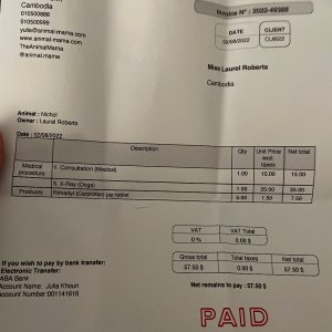 Not gonna lie, today was ruff. Up most of the night with Nichol. He is not doing well and Iām questioning all my life choices about why I did this to him. Iāve got an amazing support network here already with Landon and the staff at the school plus my amazing ā¤ļøhubs and ā¤ļøkids back home rallied around both Nichol and I as I worked through it. I did not go into school today. I took Nichol to the vet. In my copious preparation I had already sourced out two trusted, capable and English speaking Ā veterinarian clinics before coming here. The staff at east west confirmed my choices as the best so I reached out to both for an appt ASAP! Animal Mama responded quickly and they could See him that morning so I made my appointment for 10 AM. I caught a Grab and was there right on time. Iām super super impressed with the care he received, they were kind and patient and knowledgeable. I canāt ask for more than that. The vet was concerned about his hips and his knees. He took x-rays and determined his hips are great but he has one bad knee with a hyper mobile patella. The 22 hours on the flight with extended time not being able to walk around was more than his knee was able to tolerate. So inflammation and pain were the result. He prescribed 10 days of Meds and he predicts we will be on the mend shortly. All this for $57.50! And supposedly this is the āexpensive āvet in town. I am more than happy to pay that as you canāt even walk into a vet in America for less than $100 Let alone get x-rays and meds!